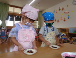 今日も朝から暑かったですね。給食は、冷やし中華でした。夏にはさっぱりしたものがおいしいですよね。カボチャサラダのカボチャは蒸したので、甘みがあって食べやすかったです!おやつはごぼうチップでした。みんな大好きでいっぱい食べてくれました。