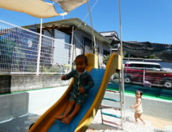 日差しが強くなり、本格的にプール遊びを楽しめるようになりました。プールに入り、水遊び用のおもちゃで遊ぶ子ども達。すべり台に挑戦する子の姿も見られました。少しずつ、プールでのお約束や、準備の仕方が分かってきたうさぎ組🐇の子ども達です。
