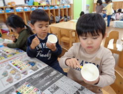 きりん組(鬼のお面作り)&りす組(鬼のお面&豆入れ作り)