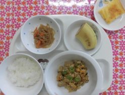 今日は日中は暖かくなりましたね。朝から発表会の予行練習をしていた子ども達は衣装を身に付けて発表していました。とても可愛い姿が見れました!給食の豚汁は、みんなお腹が空いていたようでたくさん食べてくれました。