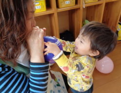 2021年が明けました。10名のお友達が勢ぞろい。元気に遊べていますよ♪今年は、どんな成長を見せてくれるかな?保育士が「フーフー」膨らませていると、興味深くジーっと見入っています。