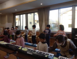 今日は、くま組さんと一緒に合奏を合わせてみました。音を絶対ならさない事や、先生を見る事など お約束をして練習をしました。みんなと合わせる事は、とっても難しいですが集中して頑張ってました。