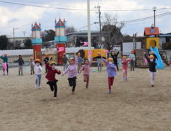 正月遊びをしました。まだ、ひらがなが分からないので1枚1枚のかるたのイラストを見て探す子ども達。見つけると大きな声で「あった~!」と大盛り上がりでした。