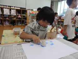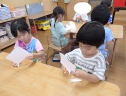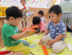 すっかり梅雨の季節ですね。雨☔が降っていたので、朝から室内でコーナー遊びをしました。大きな粘土やブロックを出して、時間いっぱい遊んでみんなでお片付け。前よりも、片付け終わるのが早くなりました❣❣お集まりをした後は、かたつむり🐌の製作をしました。
