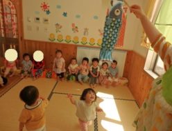 今日は、暑かったですね~。長袖で登園したお友達は、朝から半袖に着替えました。もうすぐ「こどもの日🎌」ですね。子ども達の健やかな成長を願って、みんなで♪やねより たかい こいのぼり~♪と歌いました。その後は、こいのぼり🎏製作です。