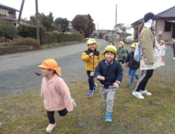 りす🐿・うさぎ🐇・ぱんだ組🐼さんは、猪の目公民館へお散歩にでかけました。ぱんだ組🐼さんが、りす🐿・うさぎ🐇のお友達の手を引いて行きましたよ。追いかけっこしたり、草花を摘んで遊びました。