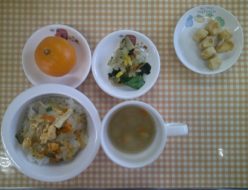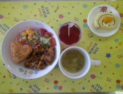昨日はお弁当お世話になりました。みんなとても喜んで食べていましたよ😊給食は、親子丼でした。みんなパクパク食べてくれました❣おやつは、お麩のラスクでした。