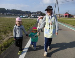今日は、きりん組とりす組さんは猪の目のお堂さんまで散歩に行きました。きりん組と一緒に散歩に行くのは2回目でしたが、りす組が中々お兄ちゃんたちと手を繋ぐのを嫌がりきりん組さんは、苦戦していました。