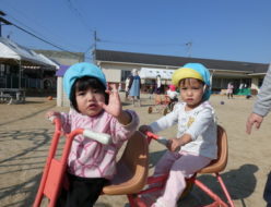 今日は、戸外遊びをしました。お天気も良く、子ども達は外に出ると、嬉しそうに遊び始めていました。砂場では、スコップで掘ったり、カップに砂を入れたりと、思い思いに楽しむ姿が見られました。滑り台も、上手に階段を登り、何回も滑ってニコニコでした。