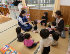 いよいよ師走。随分冷え込んできましたね。鼻水が出るお友達が増えているものの、子ども達は暖かい部屋で元気いっぱいで遊んでいます。お集まりでは、♪あわてんぼうのサンタクロースを歌っていますよ。